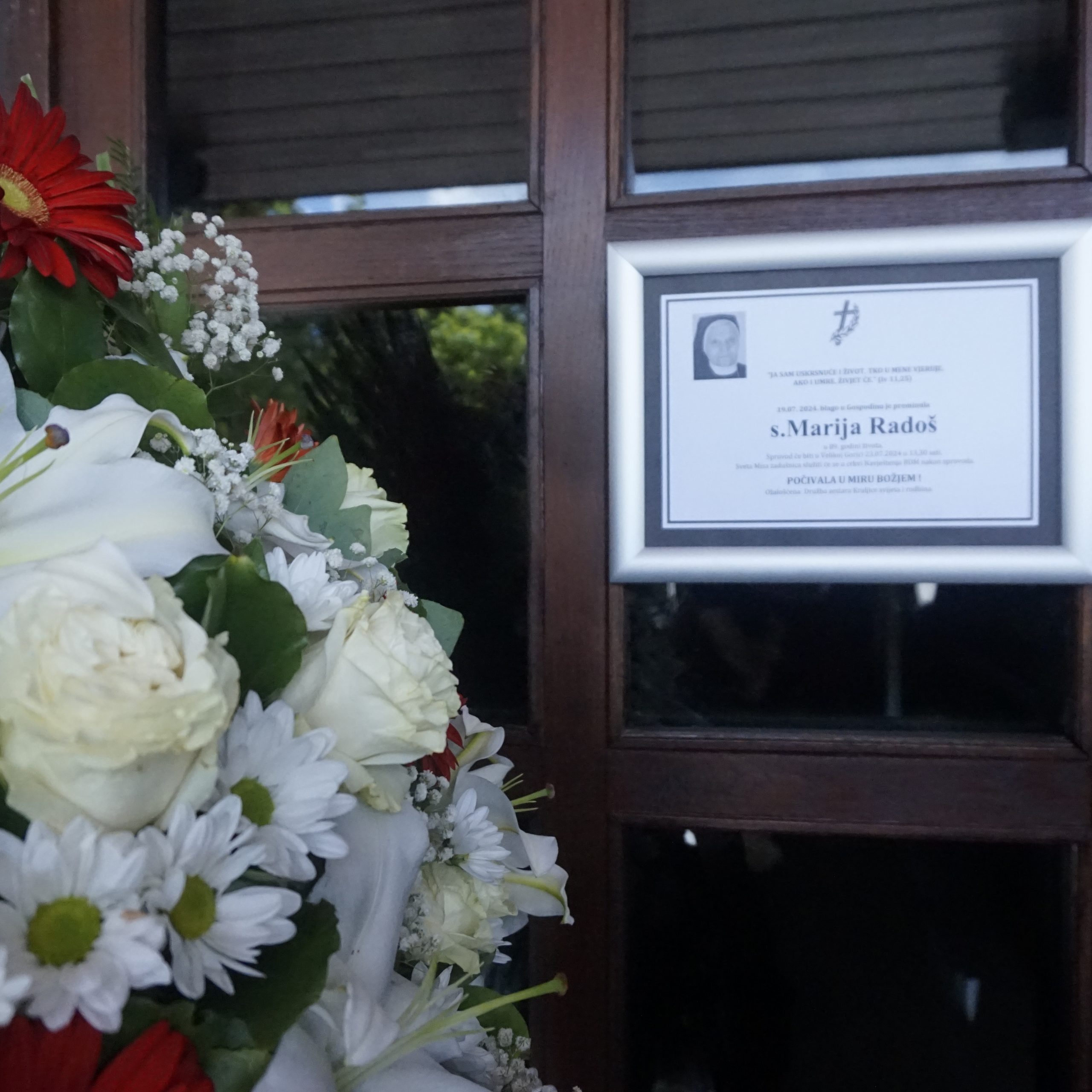 Ono što je neizbježno za svakoga čovjeka jest smrt koja nas pohađa, vjerujemo, po Božjem određenju. Tako je ona posjetila našu s. Marija (Mara) Radoš u petak 19.07. u 23 sata i 30 minuta. Došla je ta smrt iznenada, došuljala se baš kao što je naš Gospodin rekao: „Bdijte, jer ne znate ni dana ni časa!” Bdijmo i molimo i tako se pripremajmo na skori Gospodinov dolazak. Jer naš život je čekanje, smrt je susret s Gospodinom što dolazi. Nije to svršetak nego početak – drugoga, drukčijeg, Bogu sličnoga, vječnog života. Iznenađujuće je da je smrt pokupila našu „zdravu“ sestru koja nije u 89. godini uzimala niti jedan lijek. I to samo u tri dana. No, naša s. Marija savršeno je znala Isusove riječi da bdije čeka svoga Gospodina, kao prava mudra djevica.